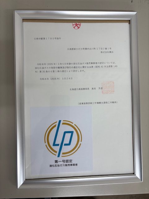 当社は、**第一号認定液化石油ガス販売事業者(ゴールド保安認定事業者)**として認定されています。